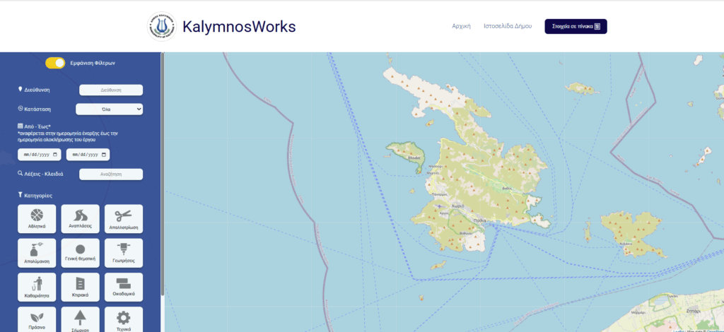 Η πλατφόρμα «Έργα σε Χάρτη» είναι διαθέσιμη στη διεύθυνση https://egov.crowdapps.net/cityworks-kalymnos/ και αποτελεί ένα νέο, σύγχρονο εργαλείο ενημέρωσης για τα έργα που υλοποιούνται στο νησί μας.